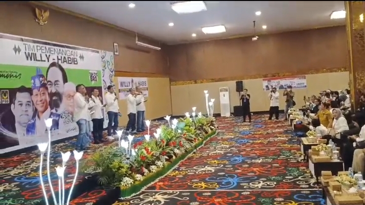 Bahkan ballroom hotel  Ballroom Hotel Aurila, Jalan Adonis Samad, Kota Palangkaraya terlihat tak mampu menampung banyaknya relawan dan pendukung Paslon Willy-Habib yang terus berdatangan.