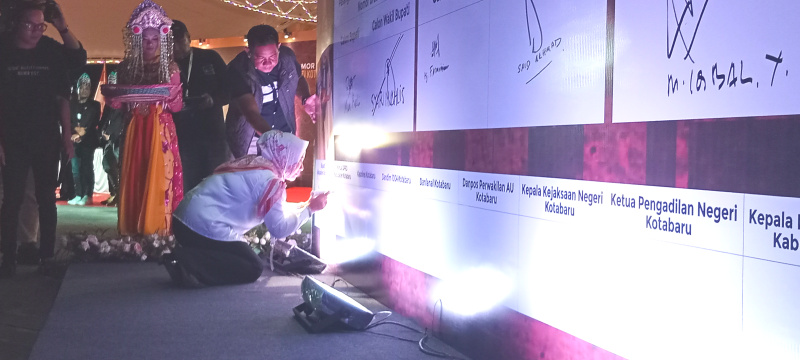 Kehadiran Suwanti yang juga turut membubuhkan tanda tangan, bersamaan kegiatan deklarasi damai semua pasangan calon (paslon) dan Forkopimda berlangsung di panggung apung saijaan Siring Laut, Senin malam (23/9/2024).