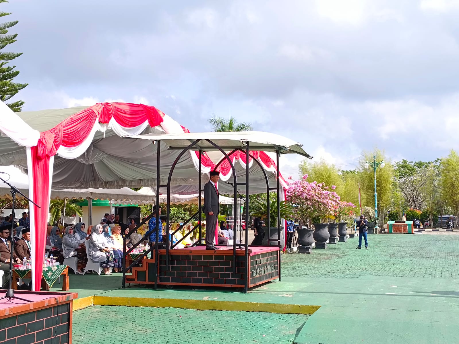 Turut hadir seluruh pejabat daerah diantaranya Forkopimda, para Asisten dan Staf Ahli, Kepala SKPD, para Camat, ASN, pelajar, dan jajaran Badan Kesbangpol selaku penyelenggara.