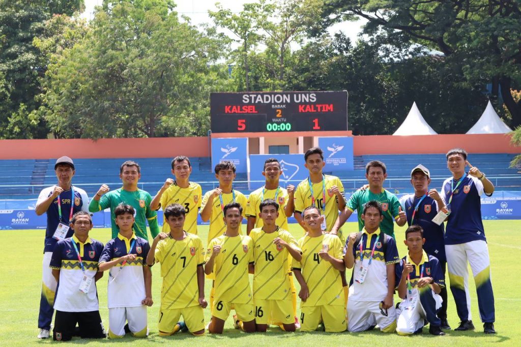 KALIMANTANLIVE.COM – Tim sepak bola NPCI Provinsi Kalimantan Selatan (Kalsel) berhasil melaju ke babak final Peparnas XVII setelah menyudahi perlawanan Kalimantan Timur dengan skor 5-1 di Stadion Universitas Sebelas Maret (UNS), Kamis (10/10/2024).