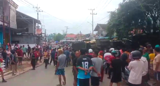 KOTABARU, KALIMANTANLIVE.COM – Sebuah dump truk bermuatan split terbalik di Desa Baharu, Jalan Raya Berangas, Kecamatan Pulau Laut Sigam yang kembali terulang disesalkan banyak pihak.