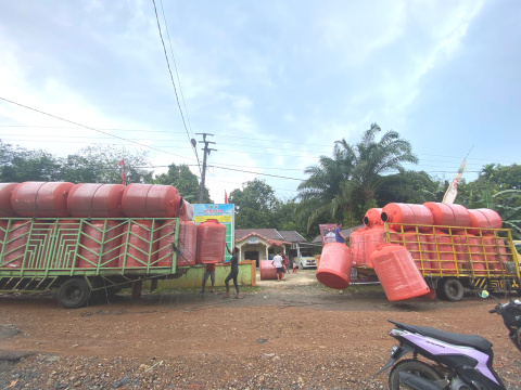 Tandon dengan kapasitas 1.200 liter digunakan warga sebagai wadah cadangan air bersih, dengan total berjumlah 427 buah yang baru-baru ini disalurkan ke masing-masing desa.