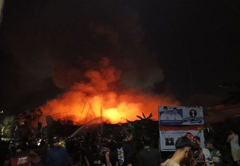 Api semakin berkobar dan semakin membesar, di mana warga di sekitarnya mengaku sempat mendengar ledakan keras dari dalam gudang.