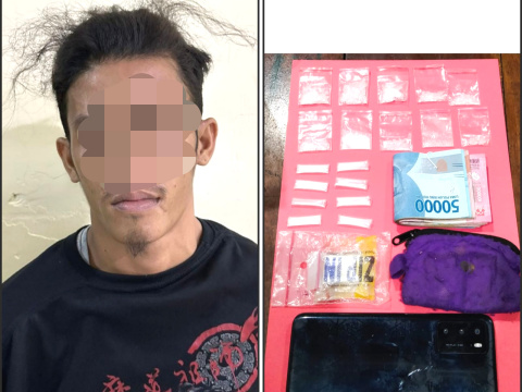 AJ ditangkap kedapatan membawa satu paket sabu dengan berat 0,25 gram. Selain diamankan satu unit ponsel Vivo warna biru, satu kotak rokok, dan satu bungkus sachet minuman energi.