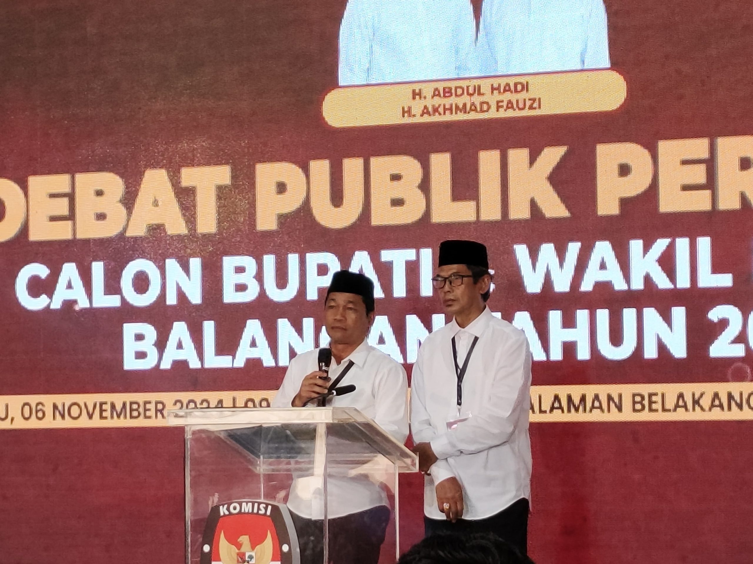 PARINGIN, KALIMANTANLIVE.COM – Pasangan calon (Paslon) Bupati dan Wakil Bupati Balangan nomor urut 1, H Abdul Hadi dan H Akhmad Fauzi memaparkan visi dan misi mereka dalam debat publik pertama.
