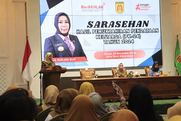 BANJARBARU, Kalimantanlive.com – Penjabat sementara (Pjs) Wali Kota Banjarbaru, Nurliani Dardie, membuka acara Sarasehan Hasil Pemuktahiran Pendataan Keluarga 2024 (PK-24) di Aula Gawi Sabarataan, Pemerintah Kota Banjarbaru, Selasa (12/11/2024).