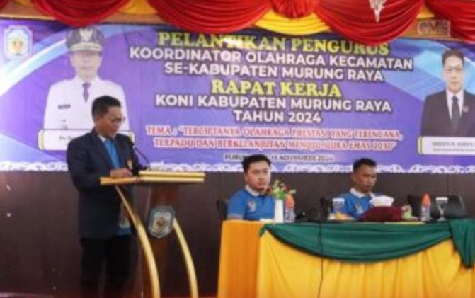 Rapat Kerja KONI Kabupaten Murung Raya tahun 2024 mengusung tema “Terciptanya olahraga prestasi yang terencana, terpadu, dan berkelanjutan menuju Mura Emas 2030.”