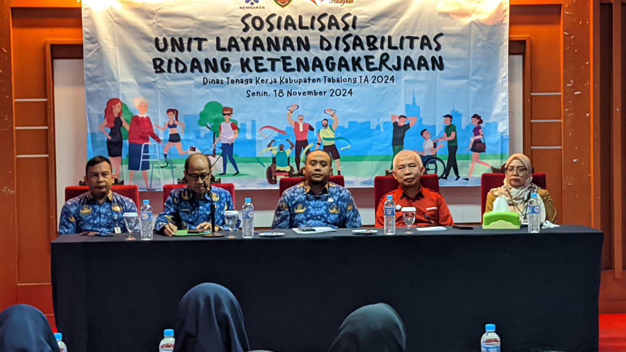 TANJUNG, KALIMANTAN LIVE.COM – Dinas Tenaga Kerja (Disnaker) Kabupaten Tabalong mensosialisasikan unit layanan disabilitas ketenagakerjaan di Hotel Jelita Tanjung, Senin (18/11/2024).