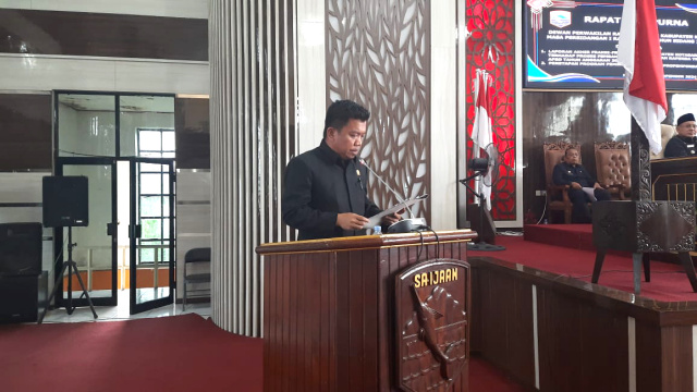 Penyampaian laporan akhir disampaikan Ketua Fraksi, Mustakim SE. Dalam Rapat Paripurna di Lantai 3, Gedung DPRD Kotabaru, Senin (18/11/2024).