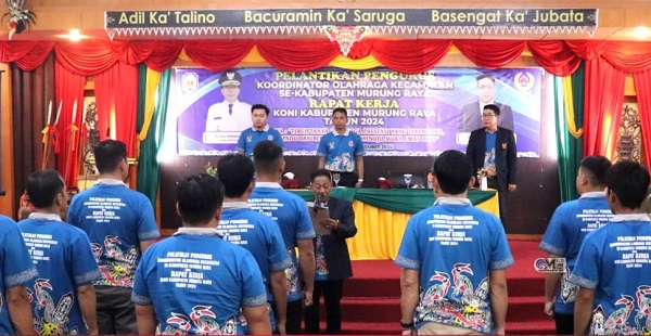 PURUK CAHU, Kalimantanlive.com – Asisten I Setda Murung Raya, Rahmat K. Tambunan, menghadiri pelantikan dan pengukuhan pengurus Koordinator Olahraga Kecamatan (KOK) Murung Raya 2024 sekaligus Rapat Kerja (Raker) KONI di Aula Gedung Dewan Adat Dayak (DAD) pada Jumat (15/11).