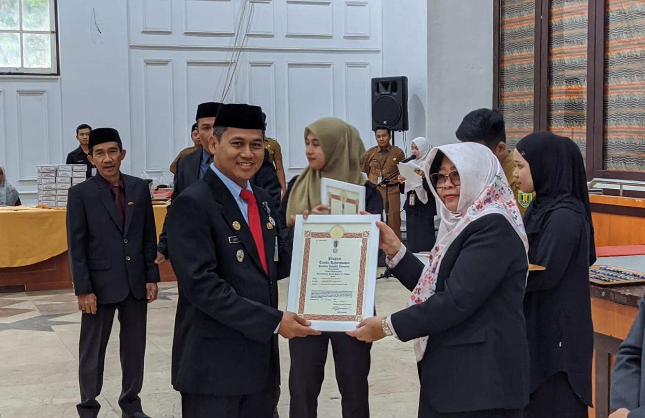 TANJUNG, KALIMANTANLIVE.COM – Ratusan aparatur sipil negara (ASN) di Lingkungan Pemerintah Kabupaten Tabalong menerima tanda kehormatan Satyalancana Karya Satya.