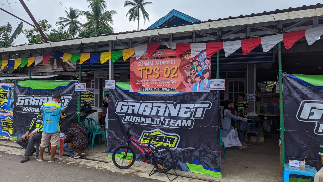 “Kami di sini punya komunitas balap sepeda dan sudah ada seragam. Jadi atas dasar itu kami konsep TPS 02 Sulingan dengan dipasang spanduk komunitas kami Gaganet,” jelas Ketua KPPS 02 Sulingan, Lailan S, Rabu (17/11/2024).