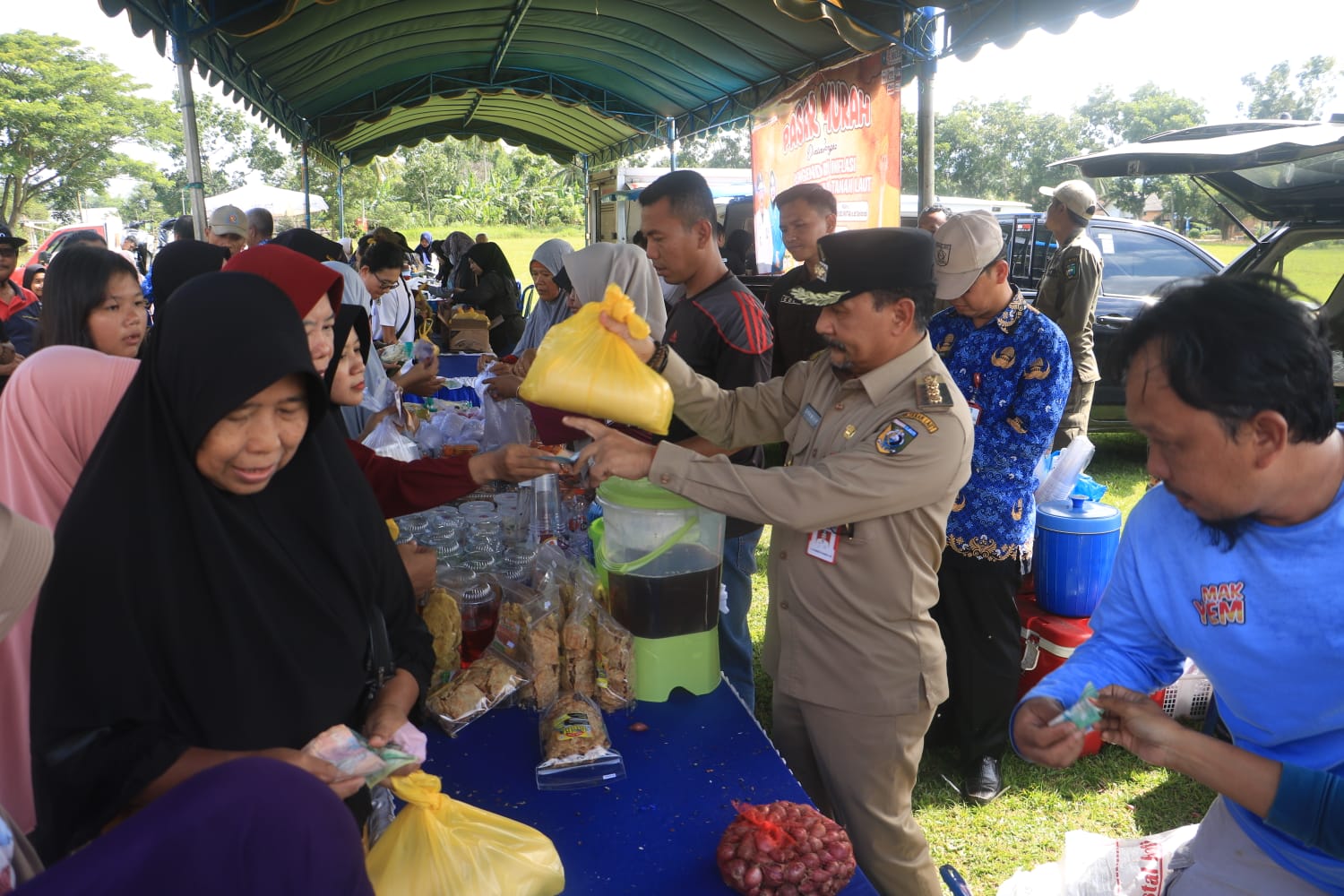 “Ingat dengan warga yang lainnya, jangan memborong, supaya semua kebagian,” ucap Syamsir.
