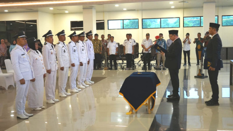 “Hari ini kita bersama-sama menyaksikan prosesi pelantikan yang menjadi langkah awal bagi kepala desa yang baru untuk dapat melaksanakan tugas dengan penuh amanah dan tanggung jawab,” katanya.