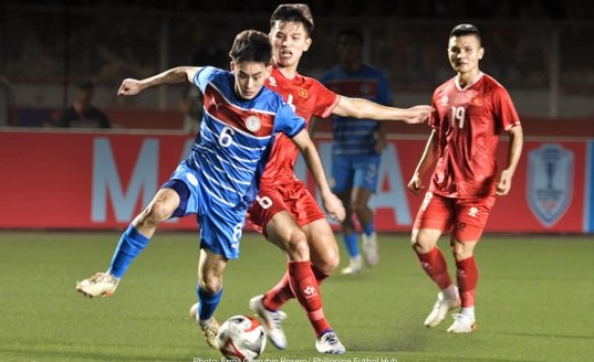 Filipina sempat unggul lebih dulu lewat gol Jarvey Gayoso pada menit ke-68, yang memanfaatkan kelengahan lini pertahanan Vietnam. Namun, Vietnam, yang terus menekan sepanjang pertandingan, akhirnya berhasil menyamakan kedudukan di waktu tambahan. Sundulan Ngoc Tan memanfaatkan umpan dari sisi kanan gawang Filipina membawa Vietnam meraih satu poin penting.