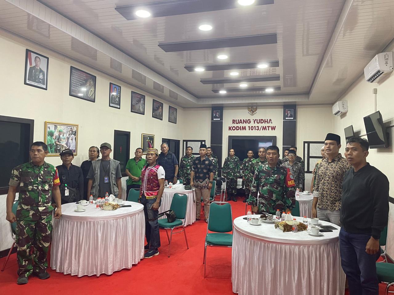 Tampak hadir dalam acara ini Pabung Dim 1013/Mtw Mayor Inf Praptomo, Pasi Ops Dim 1013/Mtw Kapten Inf Trio Pramono, Pasi Log Dim 1013/Mtw Kapten Inf M.Guntur, Danunit Inteldim 1013/Mtw Letda Inf Nur Khakim.