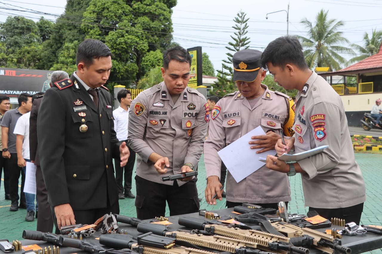 Satu per satu senjata api milik personel diperiksa secara teliti. Mulai dari pendataan nomor seri, pengecekan kondisi fisik, hingga uji fungsi. Tak hanya itu, izin kepemilikan senjata juga diverifikasi untuk memastikan keabsahannya.