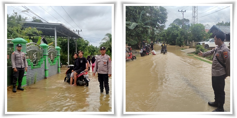 Ia bersama anggota Polsek Awayan juga membantu pengaturan lalu lintas di jalan Desa Badalungga yang tergenang air dan pengendara harus lebih hati-hati.