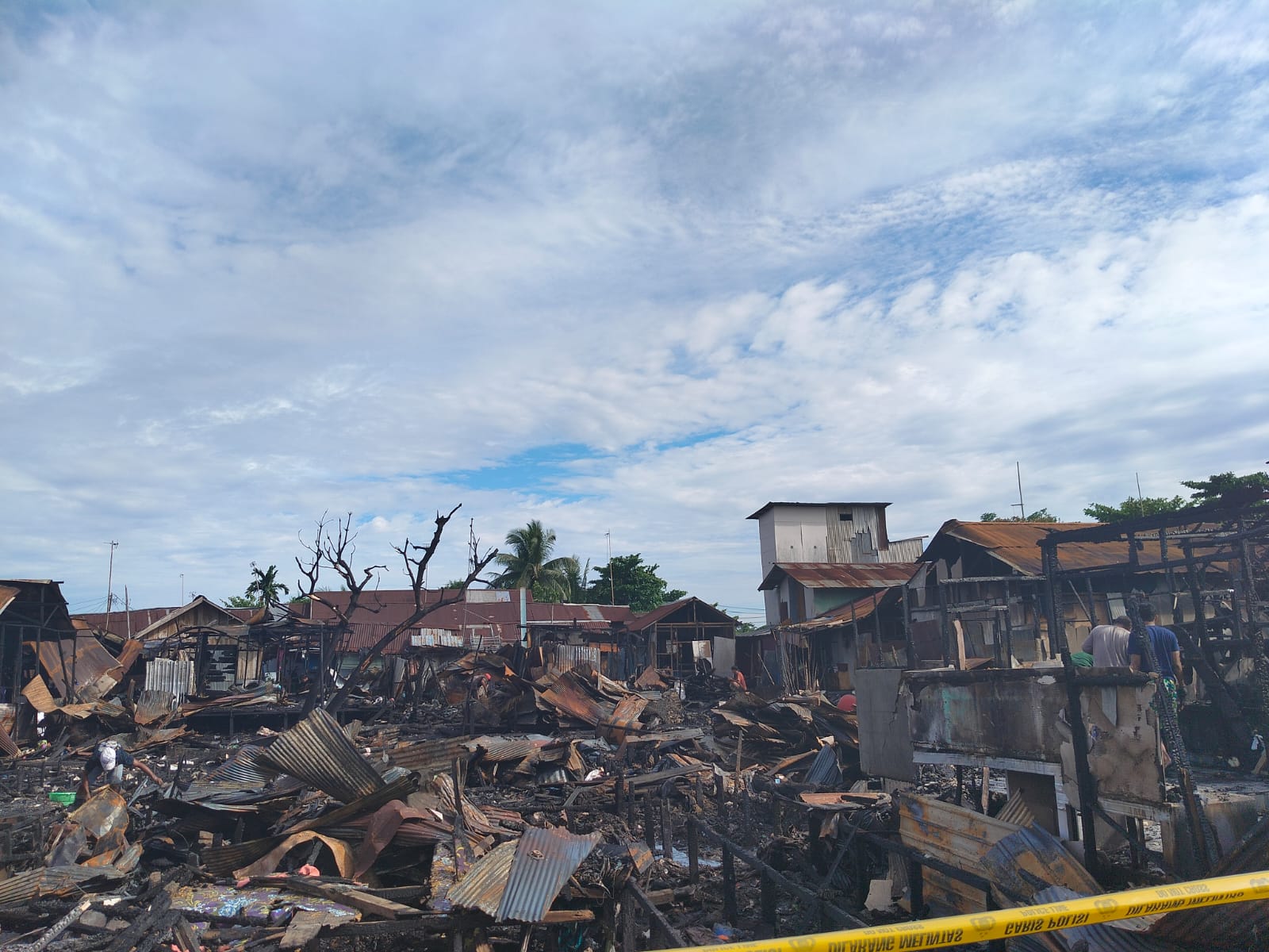 “Saya sempat bertanya ke tetangga, tapi tidak ada yang tahu asal mula api, di tengah kobaran api, terdengar dua kali ledakan,” tambahnya.