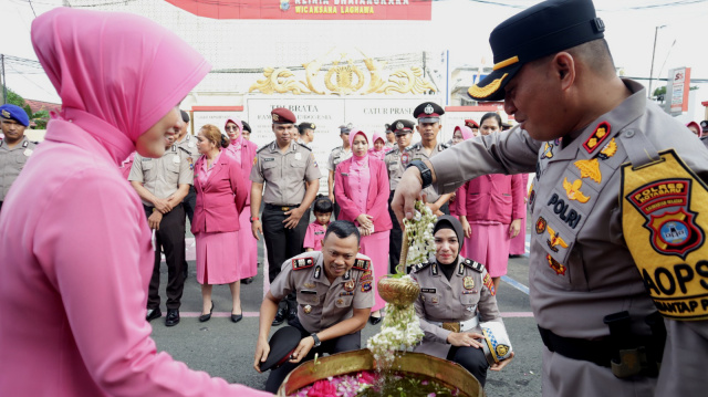 Dihadiri jajaran pejabat utama, kapolsek, perwira, personel Polres Kotabaru serta Bhayangkari Cabang Kotabaru.