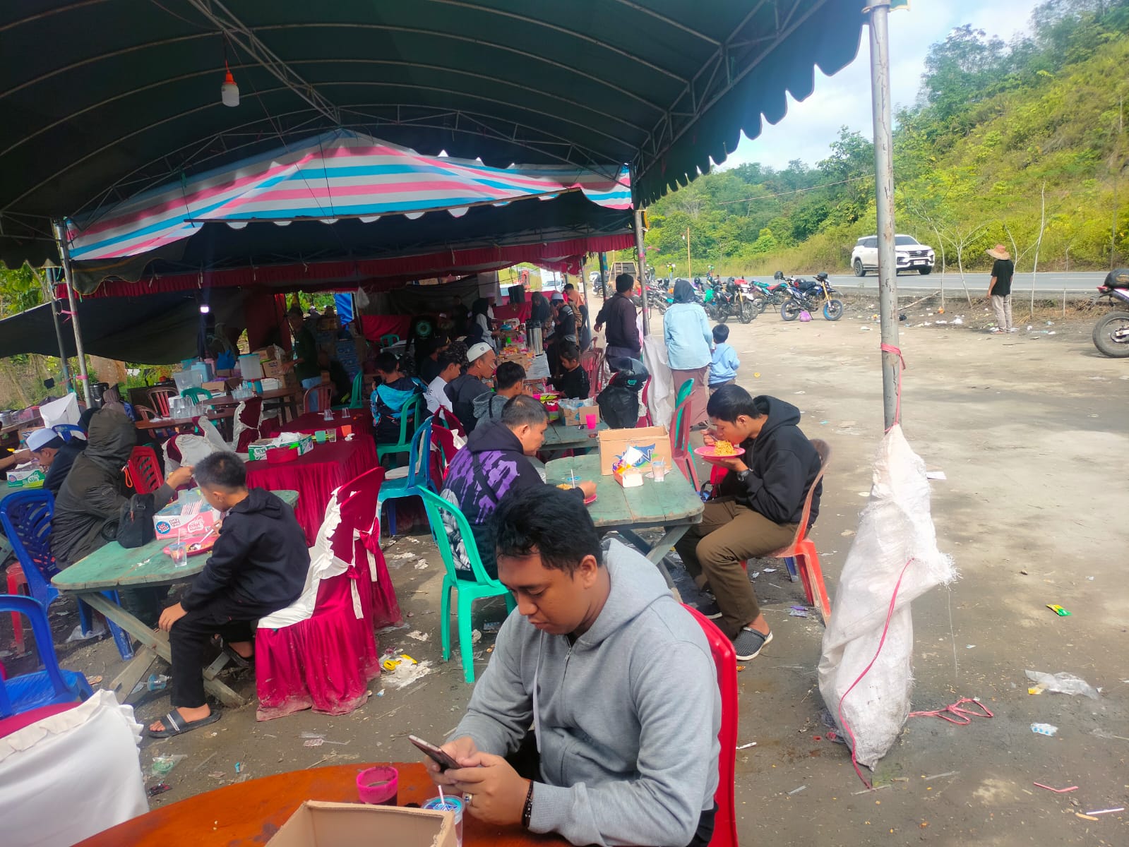 BATULICIN, KALIMANTANLIVE.COM – Posko rest area yang didirikan oleh Pemerintah Kabupaten Tanah Bumbu di KM 62, Kecamatan Mantewe, ramai dikunjungi oleh jamaah yang melakukan arus balik Haul Abah Guru Sekumpul.