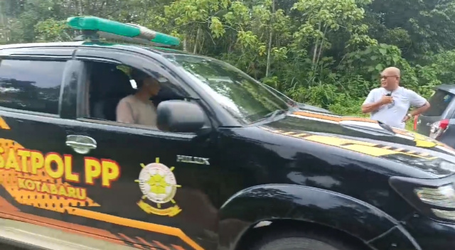 Pengaturan lalu lintas kendaraan oleh personel dipimpin Kepala Dinas Satpol PP dan Damkar Kotabaru H Akhmad Rajudinoor. Sebelum dilanjutkan petugas relawan yang tiba di lokasi.
