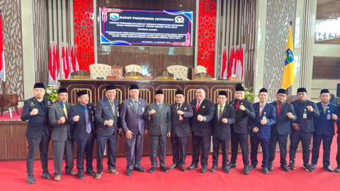 Rapat paripurna berlangsung di ruang paripurna DPRD, Senin (13/01/2025). Dipimpin Ketua DPRD Suwanti, Wakil Ketua Chairil Anwar.