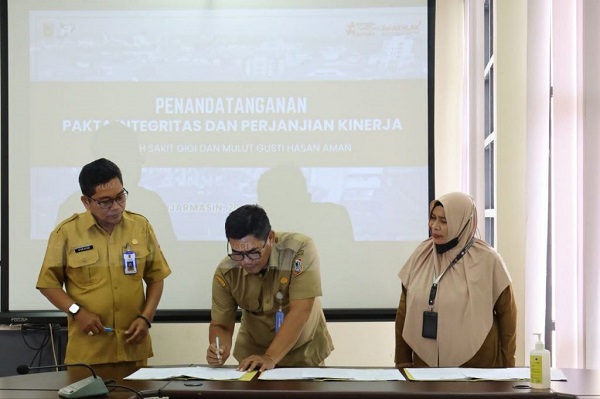 BANJARMASIN, Kalimantanlive.com – Sebagai bentuk komitmen dalam meningkatkan mutu pelayanan kesehatan, khususnya di bidang kesehatan gigi dan mulut, Pemerintah Provinsi Kalimantan Selatan melalui Rumah Sakit Gigi dan Mulut (RSGM) Gusti Hasan Aman melaksanakan penandatanganan Perjanjian Kinerja dan Pakta Integritas untuk tahun 2025.