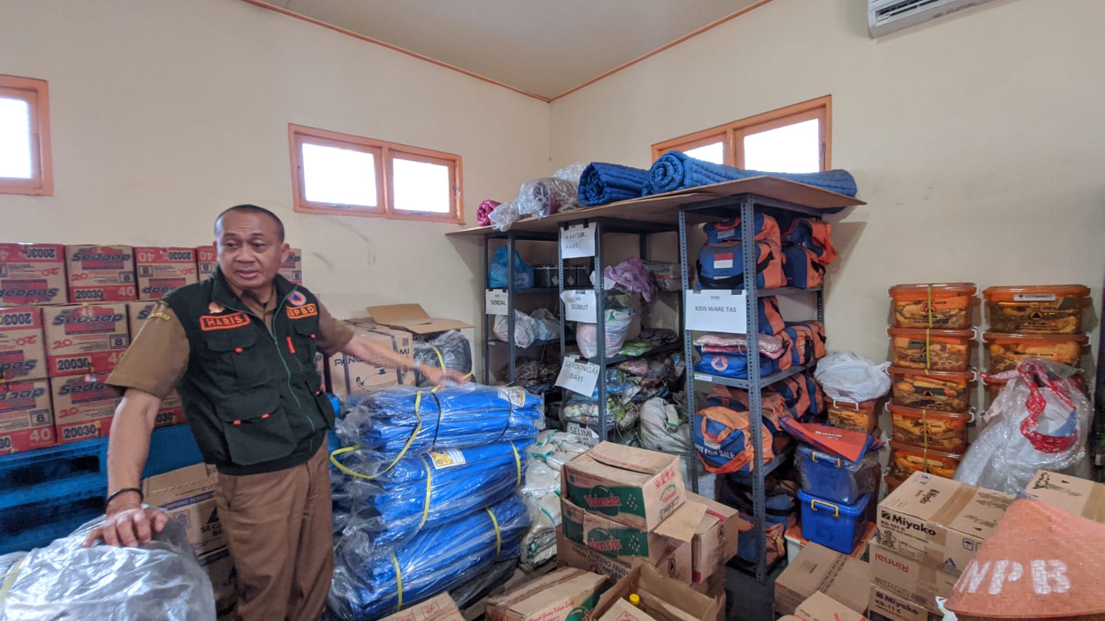 Kalak BPBD Tabalong, Haris Fakrozi menjelaskan, persediaan logistik bencana masih terbilang mencukupi yang tersimpan di gudang logistik.