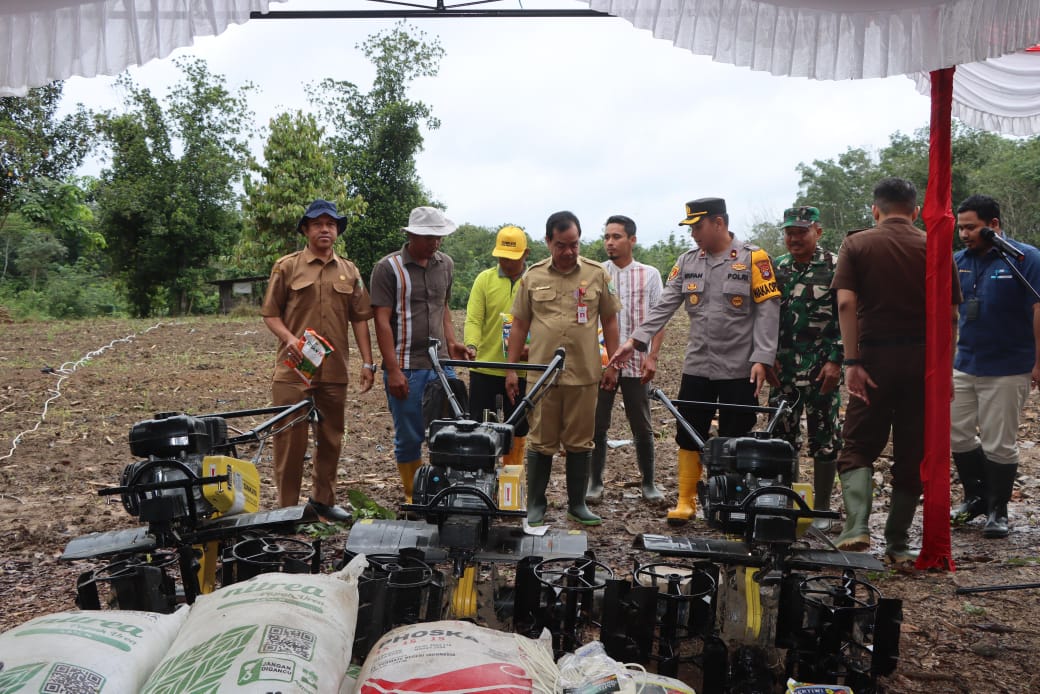 Dalam kegiatan ini, Polres Balangan menyerahkan sejumlah bantuan untuk mendukung sektor pertanian, berupa bibit jagung, pupuk, dan alat mesin pertanian.