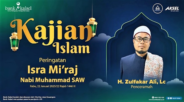 BANJARMASIN, Kalimantanlive.com – Bank Kalsel mengadakan peringatan Isra Mi’raj dengan menghadirkan penceramah H. Zulfakar Ali Lc, pada Rabu (22/1/2025) atau 22 Rajab 1446 H.