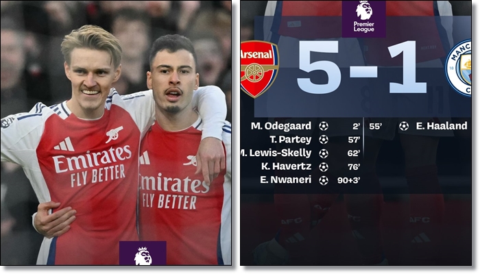 KALIMANTANLIVE.COM – Arsenal tampil buas dan menggulung Manchester City dengan skor telak 5-1 dalam laga big match Liga Inggris, Minggu (2/2/2025) di Stadion Emirates, London.