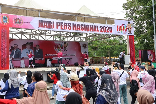 BANJARMASIN, Kalimantanlive.com -Masyarakat Kalimantan Selatan turut memeriahkan peringatan Hari Pers Nasional (HPN) 2025 dengan mengikuti jalan santai dan bakti sosial di depan eks Kantor Gubernur Kalsel, Banjarmasin, pada Sabtu (8/2/2025).