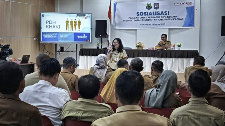 KUALAKAPUAS, Kalimantanlive.com – Pemerintah Kabupaten Kapuas melalui Bagian Organisasi Sekretariat Daerah Kabupaten Kapuas bekerjasama dengan Biro Organisasi Tatalakasana Kemendagri melakasanakan Sosialisasi Pakaian Dinas ASN di Lingkungan Pemerintah Kabupaten Kapuas. Berdasarkan Peraturan Menteri Dalam Negeri nomor 10 tahun 2024 tentang Pakaian Dinas Aparatur Sipil Negara di Lingkungan Kementerian Dalam Negeri dan di Lingkungan Pemerintah Kabupaten Kapuas.