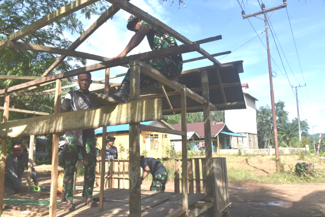 KOTABARU, Kalimantanlive.com – Kegiatan Satgas TMMD di Desa Talusi, Kecamatan Pamukan Selatan Kotabaru terus berlangsung. Kali ini kegiatan dilakukan Satgas merehabilitasi pos keamanan lingkungan (Poskamling).