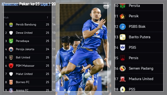# Baca Juga :Klasemen Liga 1: Persib Kokoh di Puncak, Persija dan Persebaya Membayangi, Bali United Tundukkan Borneo FC