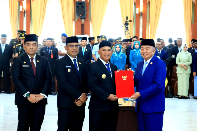 “Mudah-mudahan Bupati, Walikota dan juga para Wakilnya, serta saya selaku Gubernur diberikan Allah SWT kekuatan, kemudahan dan kelapangan berpikir agar amanah rakyat dapat kita tunaikan dengan sebaik-baiknya,” ucap Muhidin.