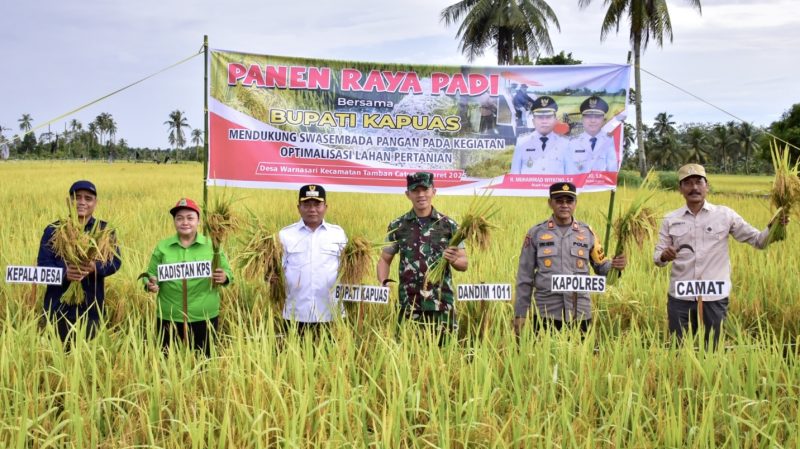 KUALAKAPUAS, Kalimantanlive.com – Bupati Kapuas, HM Wiyatno SP, lakukan Panen Raya Padi di Desa Warna Sari, Kecamatan Tamban Catur, Jum’at (7/3/2025).