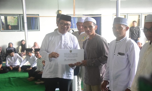 Dalam rangkaian silaturahmi dan bukber kali ini, Bupati H Fani kembali menyerahkan bantuan dana kepada Badan Pengelola Langgar Darul Amaliyah Lapahungin Desa Bongkang RT 3 sebesar Rp100 juta.