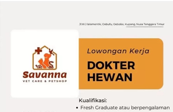 Untuk diketahui, Savanna Vet Care & Petshop adalah klinik hewan dan pet shop yang berlokasi di Kupang, Nusa Tenggara Timur.