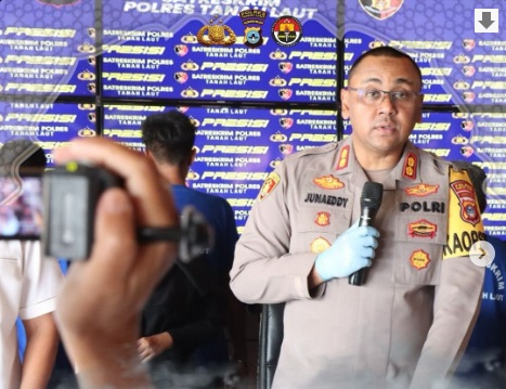 Kapolres Tanah Laut, AKBP Muhammad Junaeddy Johnny SIK MH, didampingi Kasat Reskrim AKP Arif Sukmo Wibowo SIK MH, mengungkapkan keberhasilan operasi ini dalam konferensi pers di Joglo Wicaksana Laghawa, Senin (24/3/2025).