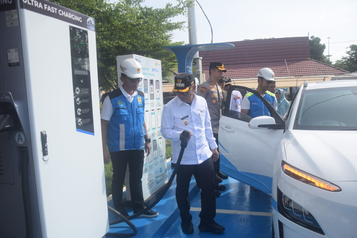 Pengoperasionalan SPKLU di Halaman MPP diresmikan oleh Bupati Tabalong, H Muhammad Noor Rifani didampingi Manager PLN UP3 Barabai, Muhamad Musa dan Manajer PLN ULP Tanjung, Rizal Buma Bayuaji.