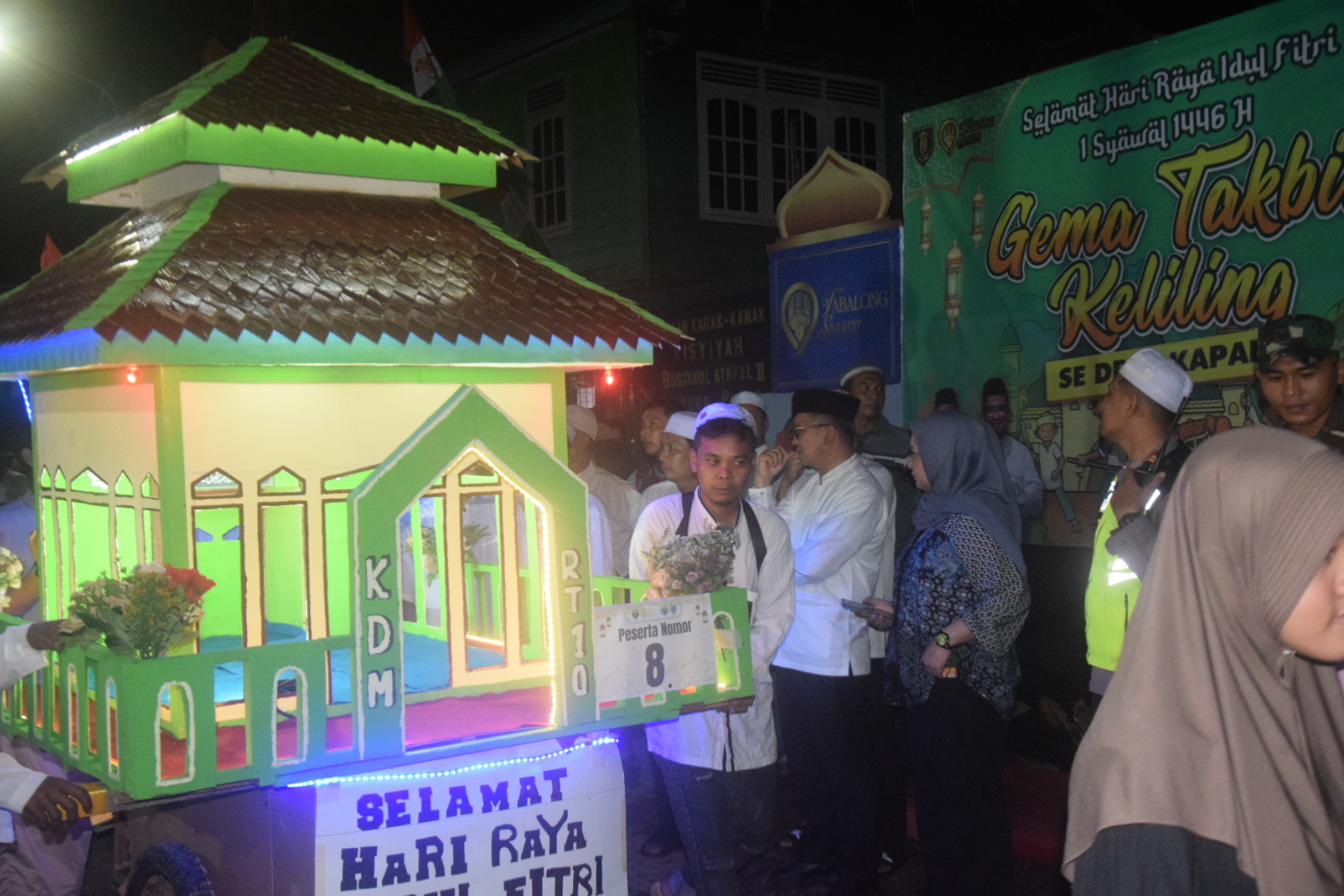 Gema takbir keliling ini digelar pemerintah desa (Pemdes) Kapar yang dimeriahkan belasan peserta dari perwakilan RT se-Desa Kapar yang dimulai dari depan Kantor Desa Kapar, Minggu (30/3/2025) malam.