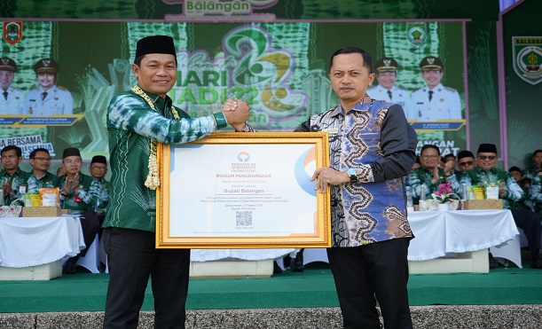 Penghargaan tersebut diserahkan langsung oleh Kepala Perwakilan Ombudsman RI Provinsi Kalimantan Selatan, Hadi Rahman, kepada Bupati Balangan, H Abdul Hadi dalam acara puncak peringatan Hari Jadi Kabupaten Balangan ke-22, Sabtu (13/4/2025), di halaman Kantor Bupati Balangan.