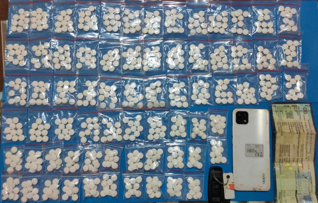 Pelaku sekaligus diduga pengedar pil berwarna putih itu, ditangkap persis di depan kantor Polsek karena informasi dari masyarakat.