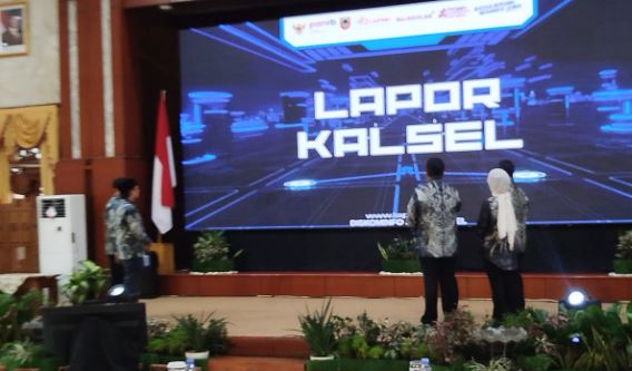 Wakil MenpanRB menyaksikan peluncuran LAPOR Kalsel pada Rakor Pelayanan Publik se-Kalimantan Selatan di Gedung Mahligai Pancasila, Banjarmasin, Kamis (17/4/2025). (Kalimantanlive.com/ eep)