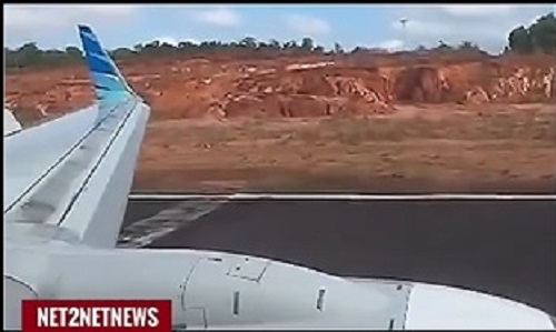Pesawat dengan nomor penerbangan GA-288 dan jenis Boeing 737-800 berregistrasi PK-GUD itu tengah mengangkut 161 penumpang dari Jakarta. Dalam video yang beredar, terdengar suara kepanikan dan jeritan penumpang saat roda depan pesawat terlihat terlepas sesaat setelah menyentuh landasan.