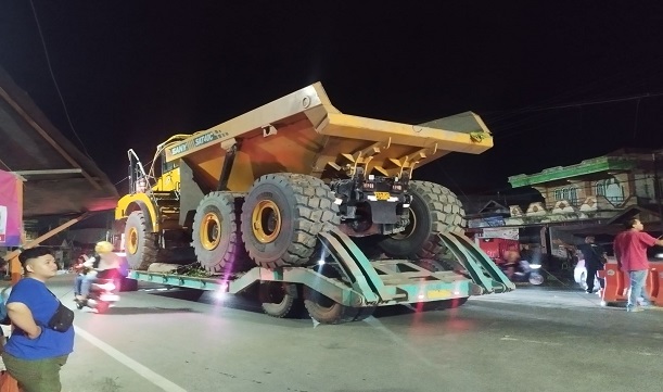 PARINGIN, Kalimantanlive.com – Sebuah truk lowbed trailer yang mengangkut truk tambang tersangkut kabel listrik saat melintas di Jalan Ahmad Yani, Kelurahan Batu Piring, Kecamatan Paringin Selatan, Kabupaten Balangan, Senin (5/5/2025) malam.