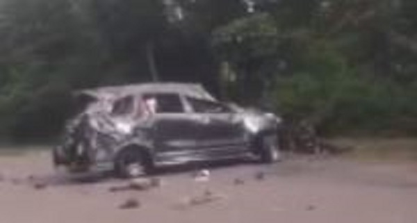 Pengemudi kehilangan kendali, sehingga mobil oleng dan terbalik sebanyak 5 kali. Tiga orang penumpang berhamburan keluar dan meninggal dunia di tempat kejadian.