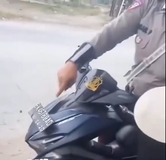 Dalam video berdurasi singkat tersebut, tampak seorang pengendara memprotes keras tindakan penilangan. Ia menunjukkan bahwa motor polisi berpelat BK itu sudah mati pajak selama lima tahun!